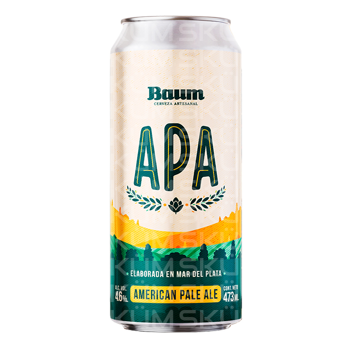 Cerveza Baum APA es una cerveza rubia tipo APA, con notas florales, cítricas, herbales y a frutos tropicales, sumamente refrescante y moderna. Con extrema tomabilidad, y una selección especial de lúpulos americanos: Cascade, Citra, Centennial y Zeus.